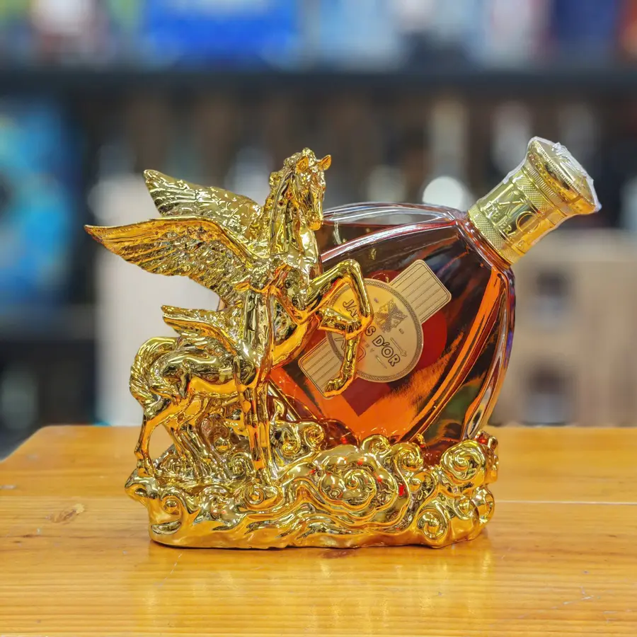 Tượng ngựa bay phong thủy kết hợp rượu Janus D’Or là vật phẩm phong thủy mang ý nghĩa bứt phá, thăng tiến nhanh chóng và thành công vượt trội trong kinh doanh. Hình ảnh ngựa có cánh tung bay tượng trưng cho tốc độ, trí tuệ và khả năng vươn xa, rất phù hợp với người làm ăn, doanh nghiệp hoặc người đang trên đà phát triển sự nghiệp.